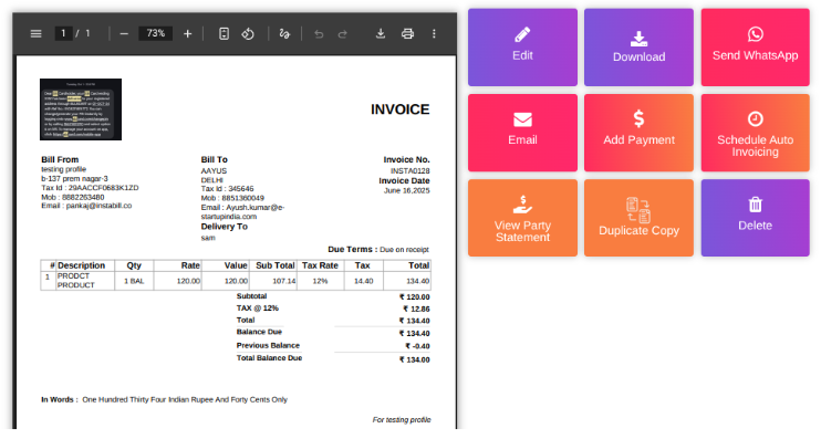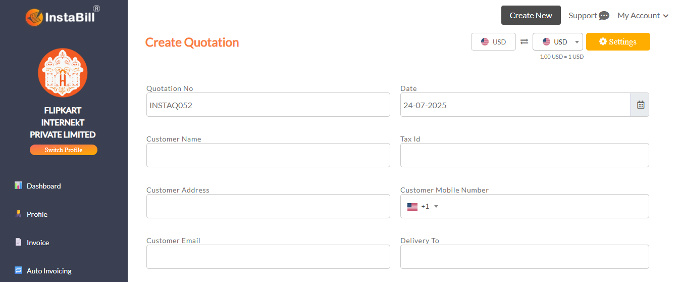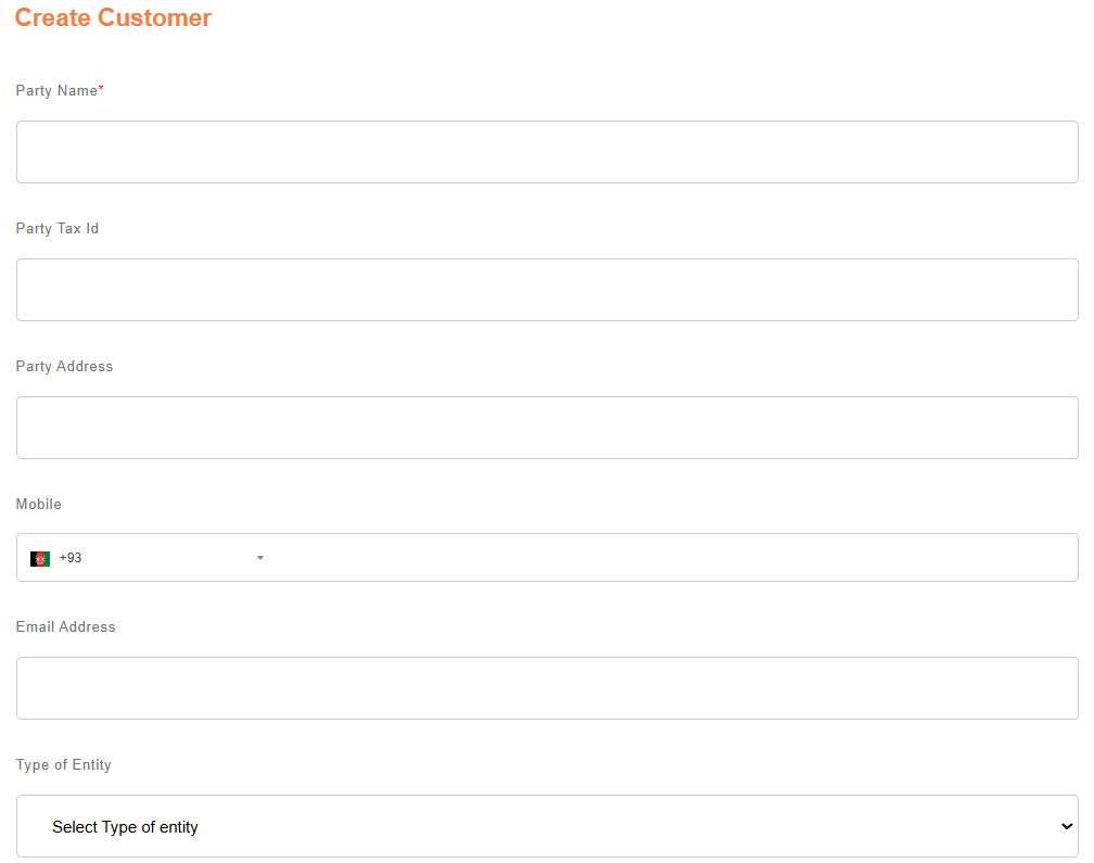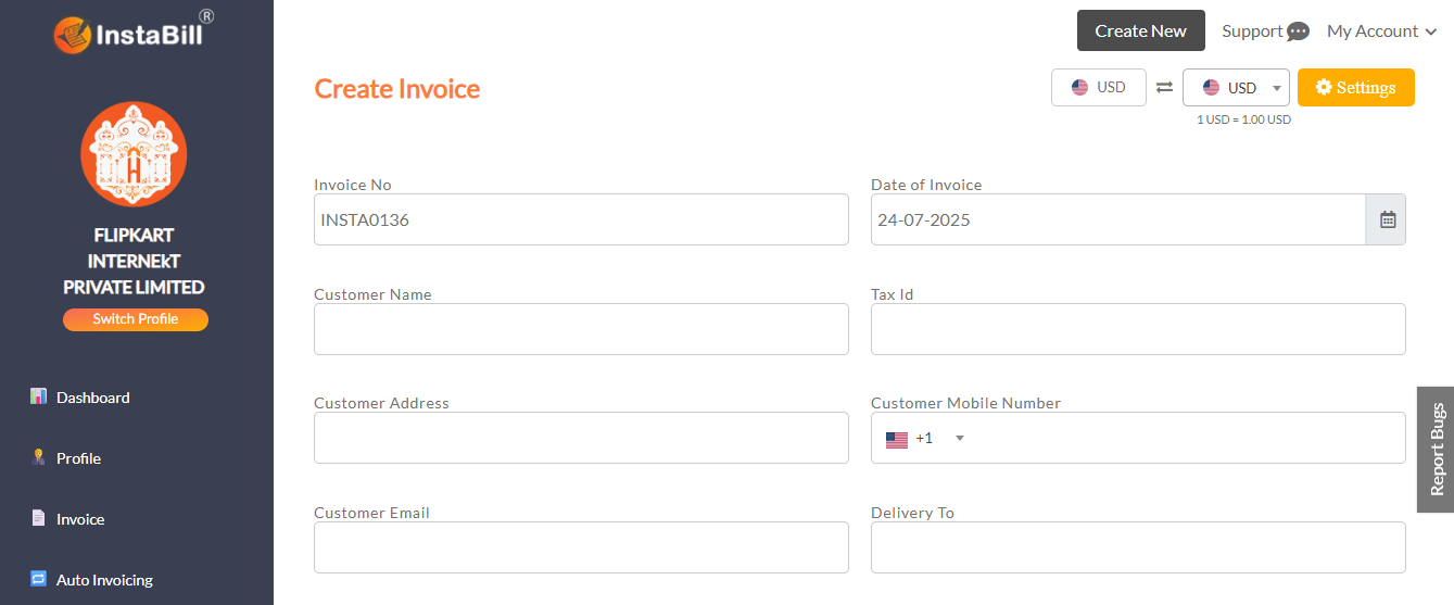 Enter invoice details including customer and product info.